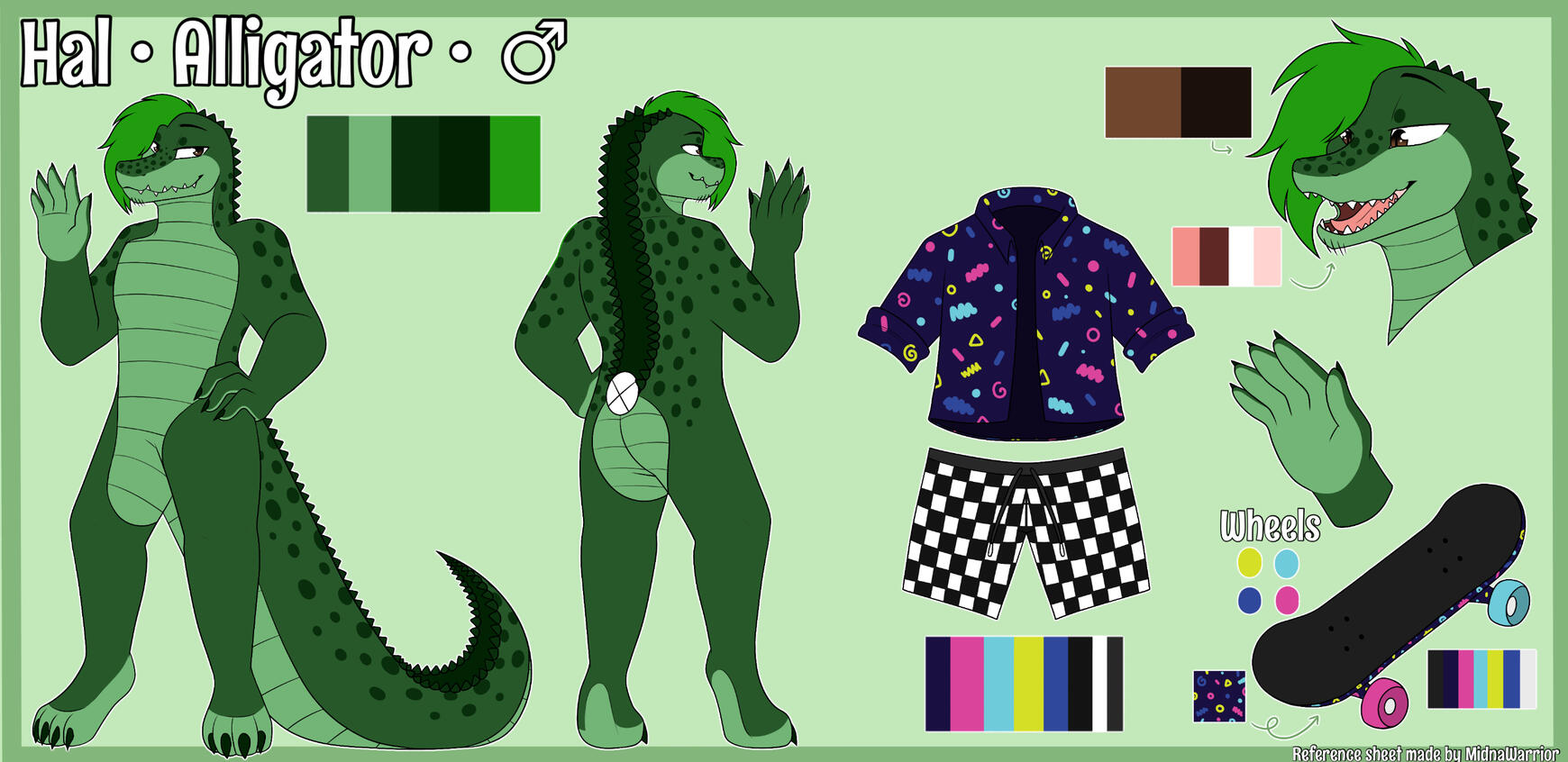 My name is Hal, and I am 22 years of age, though a lot of the time, I feel much older than that, lol. I am bigender and use He/Him or She/Her pronouns, whichever works, I don't mind either. My favorite colors are Green and Purple for sure, and I love wearing clothing that has checks on it. I am all about the slightly grunge slightly glam 80's-90's vibe.I got my start drawing from watching My Little Pony (Gen3) as a kid. It wasn't the height of Hasbro's pony shows, but I was all about it. I also watched a ton of Disney. Atlantis: The Lost Empire and Treasure Planet were two movies I would watch on repeat, along with Dreamwork's Sinbad: Legend of the Seven Seas.At first, I never considered the idea that I could be an animator. It always seemed like something that was done by wizards, not something achievable by average humans. What really set me down this path was watching animated storytime youtubers on YouTube back when that was popular. That was what made it click that, hey, anybody can be an animator, it's hard, but it's possible, and that's when I knew that this was what I wanted to do for the rest of my life.The stories I like to tell are adventurous and character centered, much like my favorite movies growing up. I personally believe that strong, likeable characters are the backbone of a good story, if you're invested in the characters, you're really gonna care about what happens in the story.Hal I. Gator reference sheet and profile picture by my wonderful friend Moon, linked below.